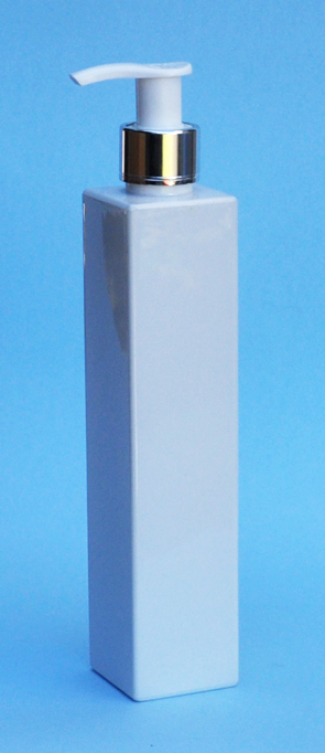 Home :: Sets-PET :: Sets-PET-180ml :: SNSET-THWPETSQ180MSWP-White Square PET Bottle 180ml with 24/410 Metallic Silver/White Pump